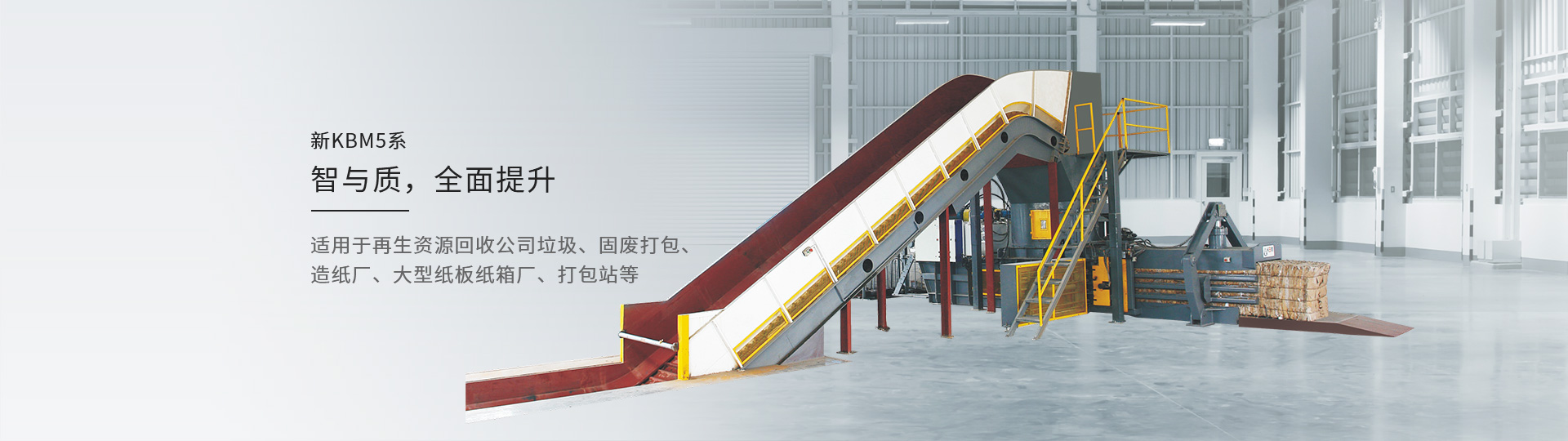 全面的配置升級為KBM5帶來了質的飛越。 30T錳鋼機身以及更寬大的下料口,讓KBM-5充滿強悍的工業氣息;搭載兩臺55KW伺服電機帶來153T點的壓縮力, 更將打包速度提升至30T/H的全新水平,壓縮也更為緊致。